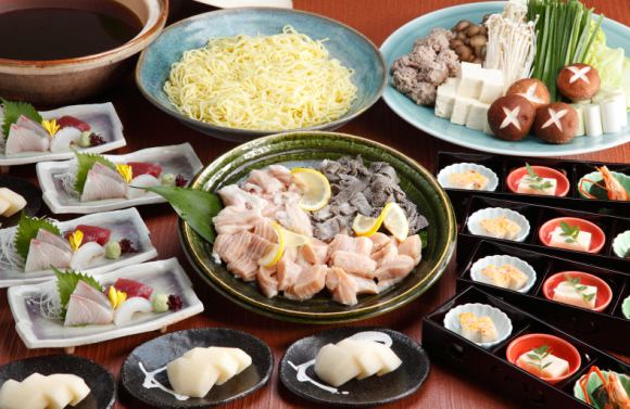(开胃菜、刺身、牛肉火锅、中式面条、甜点) - 8000日元套餐包含2小时无限畅饮 *超过10人