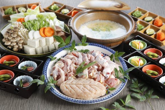 (开胃菜、刺身、鸡肉火锅、粥、甜点)
