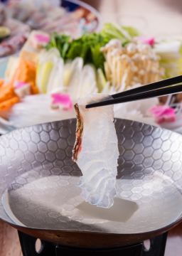 开胃菜、刺身、石斑鱼火锅、炭烤石斑鱼、石斑鱼寿司、米粥、甜点 - 河豚火锅套餐